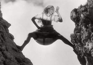 Bild på en kvinna som gjorde sina ”film-stunts” HELT SJÄLV, utan trick, data-animering osv. Den gången var det ALPIN SPORT allt handlade om…