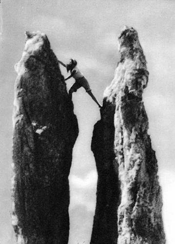 RIKTIG klätterscen från tidigt 1930-tal, fortfarande Riefenstahl – i Dolomiterna, utan fusk och bara fri-klättring hela tiden…