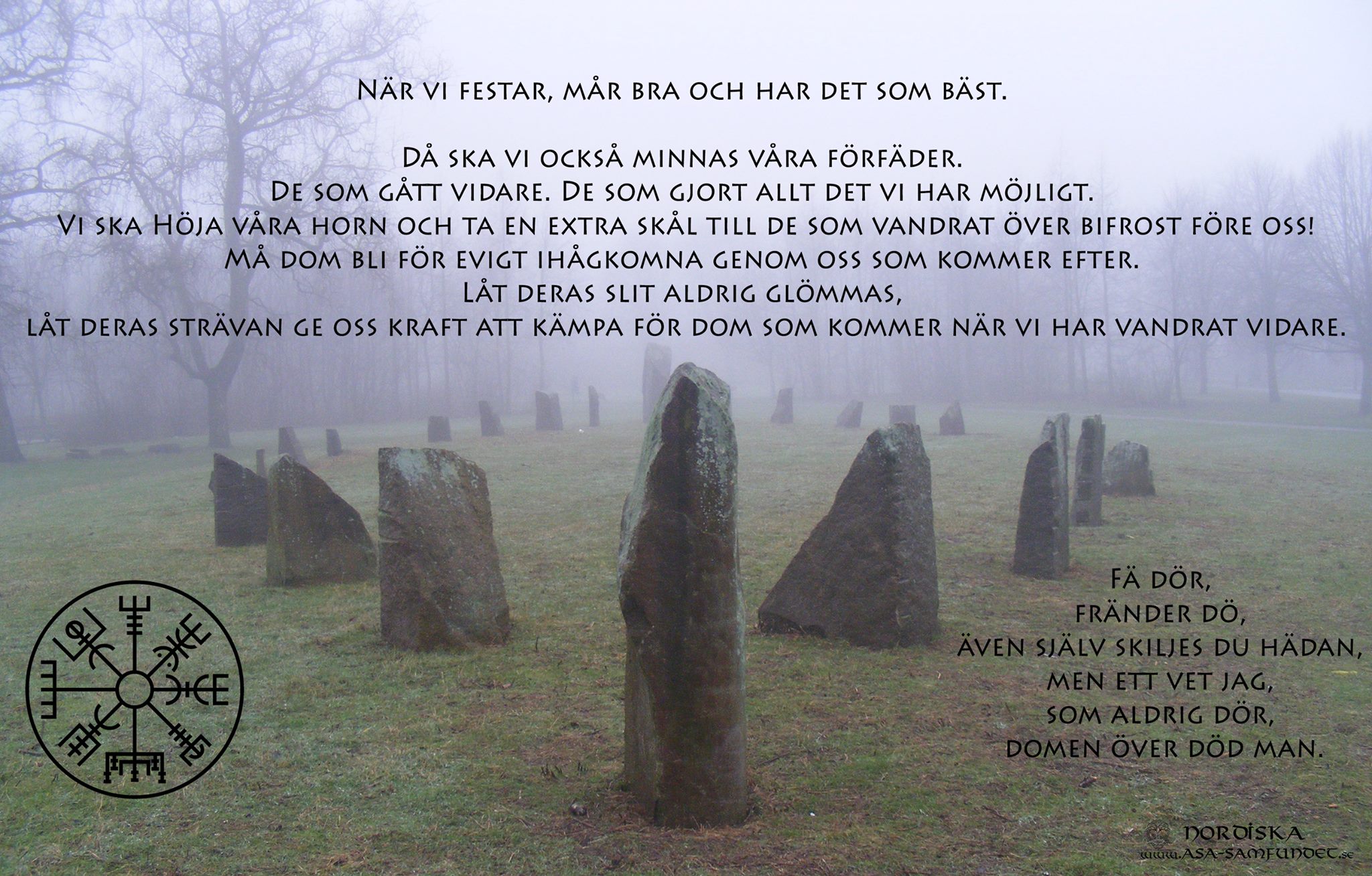 Man skulle också kunna frågat, hur många svenskar som känner till Asarna, och anser dem som minst lika ”verkliga” som ”gud”. Eller också skulle man kunnat fråga, hur det kommer sig att många svenskar minns redan döda personer – som alltså inte existerar längre – inklusive sina föräldrar och förfäder, och hela den kultur och historia det egna landet har. Ärar och älskar man allt det här – ja då är man OCKSÅ just en Hedning, och har dessutom tagit till sig stora delar av vad Asatron handlar om.