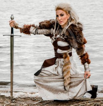 Skulle ”Hild” vara krigarnas Helerska ? Wikipedia-kunskap och medeltida en-och-en-halv-hands-svärd har inte så mycket med Asatro att göra – och varför en Rävsvans ? Hild omnämns inte som någon helerska alls, annat än på svenska Wikipedia… (Bild: Katarina Tallroth & Bianca Muratagic)