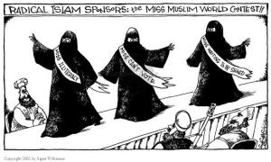 Vissa svenskar känner sig kränkta av en religion som anser den kvinnliga hälften av mänskligheten som medfödd underlägsen och bristfällig, och de känner sig kränkta av att vi alla låtsas som om så inte är fallet när vi alla banne mig vet att det är så och kommer förblir så tills vi göra något åt det, eftersom ingen annan kommer att göra nåt åt det.