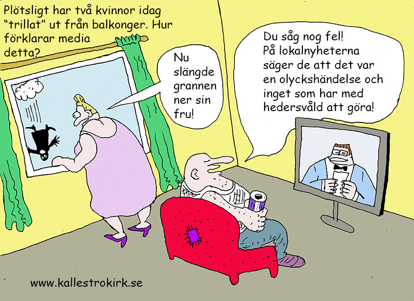 Svenska media började i morse skriva om hur grannar i området hört upprörda skrik och vrål från en balkong i närheten. Många av de boende i huset vaknade av ett bråk under natten och hörde höga röster och skrik, skriver en av våra kvällstidningar. Skriken var så höga att boende skall ha vaknat av det – men så hördes en tung duns, och allt blev tyst. Det var strax efter midnatt, och ”tumult” ska ha uppstått i trapphuset – i och för sig inget ovanligt i dessa trakter – jag har själv varit vittne till sådant otaliga gånger – och flera manliga personer uppges ha begett sig från adressen. Så hittade man en svårt skadad kvinna, som uppenbarligen fallit från en balkong – på femte våningen, som sagt. Hon avled senare på sjukhus, och en ”man i trettioårsåldern” som kvinnan skall ha haft ”en relation” till, påträffades i lägenheten – och är nu misstänkt för mord, med vilken misstankegrad anges dock inte – men kanske man kan skriva ”skäligen misstänkt”. Flera personer tycks också ha varit inblandade i dådet, åtminstone om vi får tro media.