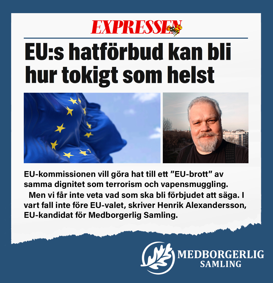 Visserligen är anonymiteten på Internet bara en illusion, därför att diktaturer utomlands, inklusive Putins Ryssland, Mullornas Iran och även EU:s politruker och zampoliter övervakar allt som sägs, men i och med dessa förslag, går den svenska demokratin i graven. Alla medborgare bör förbereda sig på vad som nu snart kommer följa. Hetsjakten och förföljelserna har redan inletts. Snart kommer man att börja brännmärka och smutskasta alla som hyser ”fel” åsikter offentligt, och därefter börjar morden, pogromerna, skottlossningen, de orätta fängslandena och arresteringarna och allt det andra.