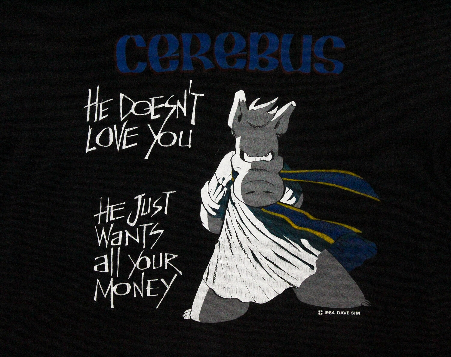 Med tanke på herr Sims åsikter och hans utsvävande privatliv – bland annat inledde han en amorös förbindelse med en 14-årig flicka anno 1983, omedelbart efter det att han skilt sig från sin första hustru var det kanske bara välförtjänt, för sådant är tekniskt sett gränsande till pedofili, även om Sim fullbordade sin förbindelse med flickebarnet ifråga först när hon fyllt 18. Under det att han och den första hustrun sällskapade under det tidiga 1970-talet så var det faktiskt hon som gav impulsen till Cerebus skapelse – hon hade tänkt sig att han skulle heta Cerberus eller Kerberos, efter den trehövdade hund som vaktar ingången till Hades och som motsvaras av Garm i Nordisk mytologi – men okunnig amerikanska som hon var, råkade hon STAVA FEL och därvid fick det bli.