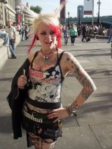 Jag minns andra tider, andra platser och människor. Den oändligt fula kyrkan St Lambertus i brungrått tegel med sin illa restaurerade 1950-talsgränd bakom fasaden mot Rhen ligger fortfarande där den alltid legat. Här finns ett ännu fulare och frånstötande ”kalvarium” från 1800-talet i grå betong på baksidan, som verkligen får dig att kalva, ja att spy på gatan och det med besked – detta år såg jag två fotbollsfans göra just detta vid åsynen av alltihop. Det var också precis här jag mötte HENNE för nu snart över tio år sedan. Die Punkerin – Punkerskan från Düsselddorf.
