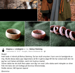 Varför Kultur- och Fritidsnämnden i Kungälvs Kommun har tillåtit de här halvfigurerna att hyra lokaler i Bohus Fästning av alla platser är okänt, men seriösa hantverkare och andra, som haft det dåliga omdömet att besöka en av ”fornsedarnas” sammankomster har blivit bestulna. Det hela är kanske inte så konstigt. Ger man sig i lag med ”fornsedare” och dylika personer så kommer sådant här förr eller senare att hända. Samfundet ”forn sed” är ökänt för att syssla med ”love bombing” för att ragga medlemmar. Man påstår att man är såå goda och såå kärleksfulla, talar vitt och brett om ”Väädegjund” och så vidare som någotslags Annie Lööf (vi minns alla kvinnan som ledde ett pedofilt Muharrem-parti) men mycket snart får de presumptiva medlemmarna se vad som kan hända.