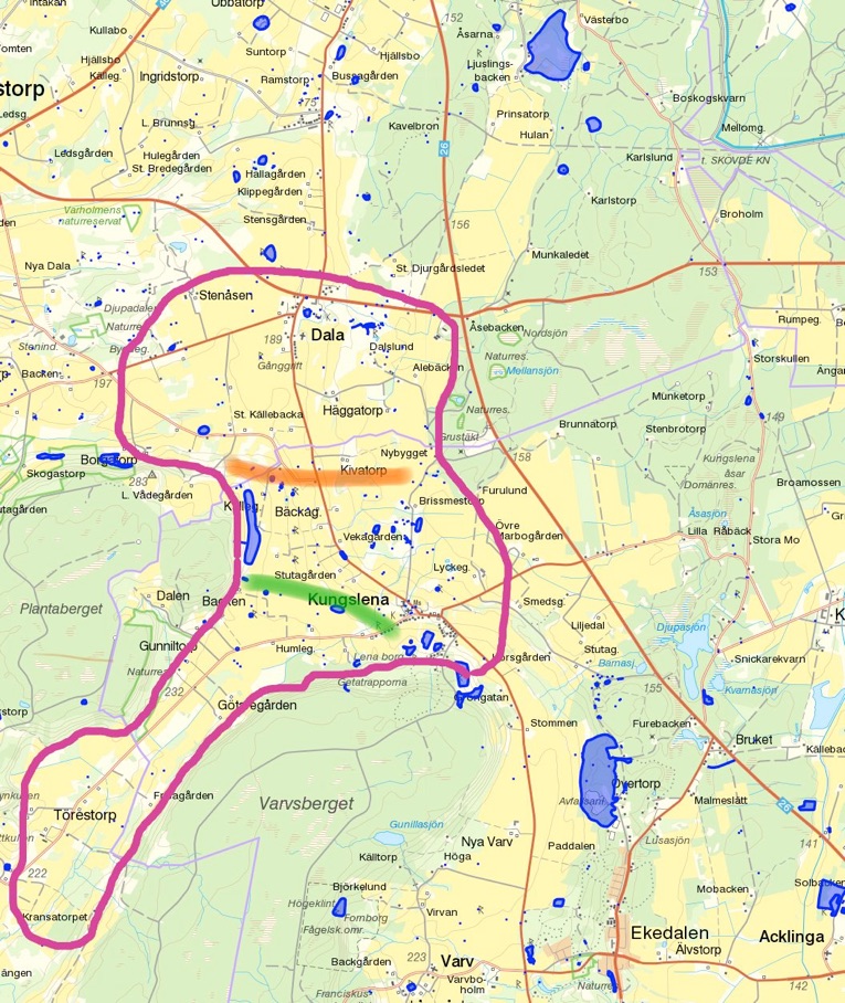 Slagfältsområdet, enligt ännu en av Stewe G.s analyser, som jag till fullo instämmer i. Vid Törestorp, i dalgången mellan Plantaberget och Varvsberget, befann sig på medeltiden ett stort träsk, Helvetesträsket.