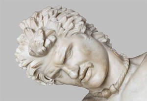 Närbild av ”den döende Gallern” – en kelt från ca 300 fK – observera LIKHETEN med fyndet från Trollhättan. Detta har både Länsstyrelsen och Svenska media HELT MISSAT !
