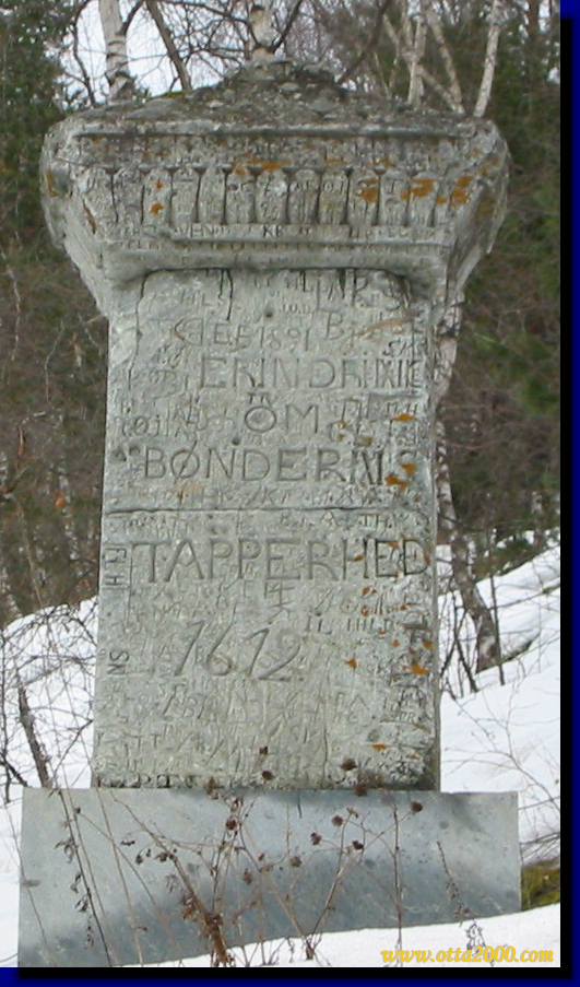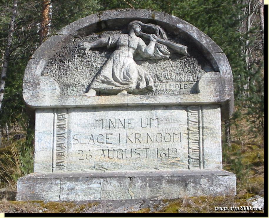 Knappa 1 km söder om Otta – nuförtiden ett samhälle med kanske 2300 invånare – ligger Kringen-passet. Om Våren 1940 var en händelserik tid i Norges historia (se del 3 av vår resekrönika) så är slaget vid Kringen, 26 Augusti 1612, inte mindre betydelsefullt för hel Nordens och Nordeuropas historia, fast ingen vill minnas det idag, de tröga svenskarna allra minst. Norrmännen däremot, har lagt ”Sinclairs Vise” och de skotska klanernas tåg genom Norge på minnet.