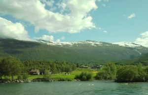 Vi närmar oss snöhöljda berg, ett evighetens landskap – ”tiotusen meter bortom människa och tid” som en viss Österrikisk och inte Tysk filosof en gång sa. Framme vid Langvattnet tar vi av emot sydväst, och Oppljostunneln, medan en annan väg leder till Geiranger, spjutviken – ett namn sammansatt av förledet ”Geir” och slutledet ”Ånger”. Inte för att vi ens behöver ångra oss så särskilt mycket. Geiranger ligger vid den innersta delen av Storfjorden, och då är man redan framme vid det västliga hav, som heter Norska Havet eller Nordatlanten. Ganska många torde veta, att just den trakten med rätta är berömd för sin skönhet – om man nu alls känner till Norge.
