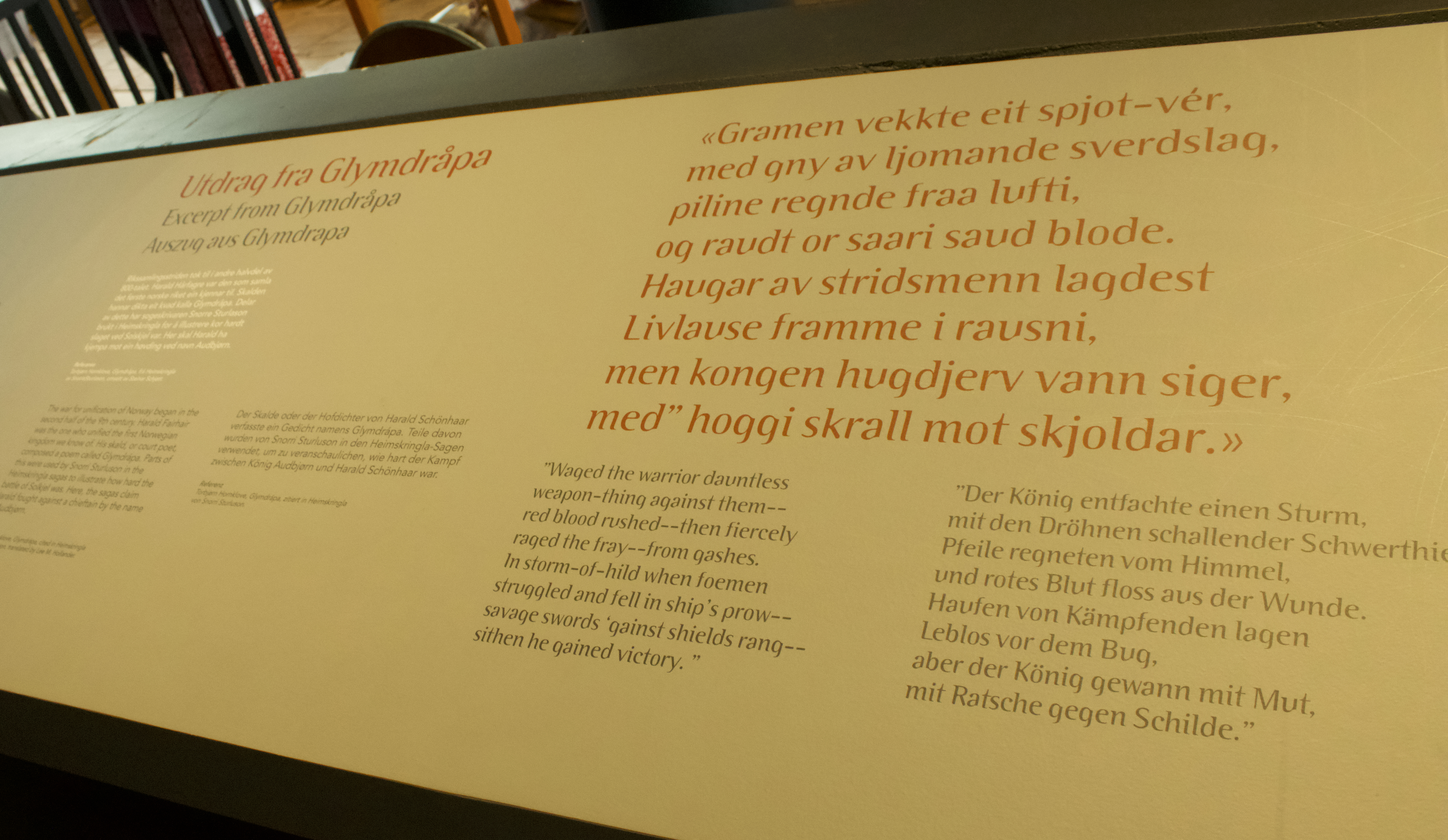 På ”Sagastads” besöks-center presenterar man SVENSKA Vikinga-re-enactors på skyltar utomhus från 2013 – UTAN att ange copy-right eller vem som avbildas på bild-materialet. Detta är ganska så fräckt, eftersom det gäller män och kvinnor som ”Hedniska Tankars” redaktion faktiskt HAR seglat och rott med, bland annat på Östersjön och utanför Trosa – inte det polska och skotska Thruso – orter som en gång hade samma namn – det var åmynningar man kunde ”tro” på och lägga till vid, enligt Asatro och gott handelsbruk. Därför må vi nu göra som Norrmännen, och utan begränsningar i copyright använda de bilder, vi tagit själva. Skäller eller stångar oss någon ”bagge” oss bara för detta, må dere alle veta, att vi gör så i deras by som de också gjort i vår, och som är lärt och känt, ja skick och fason.