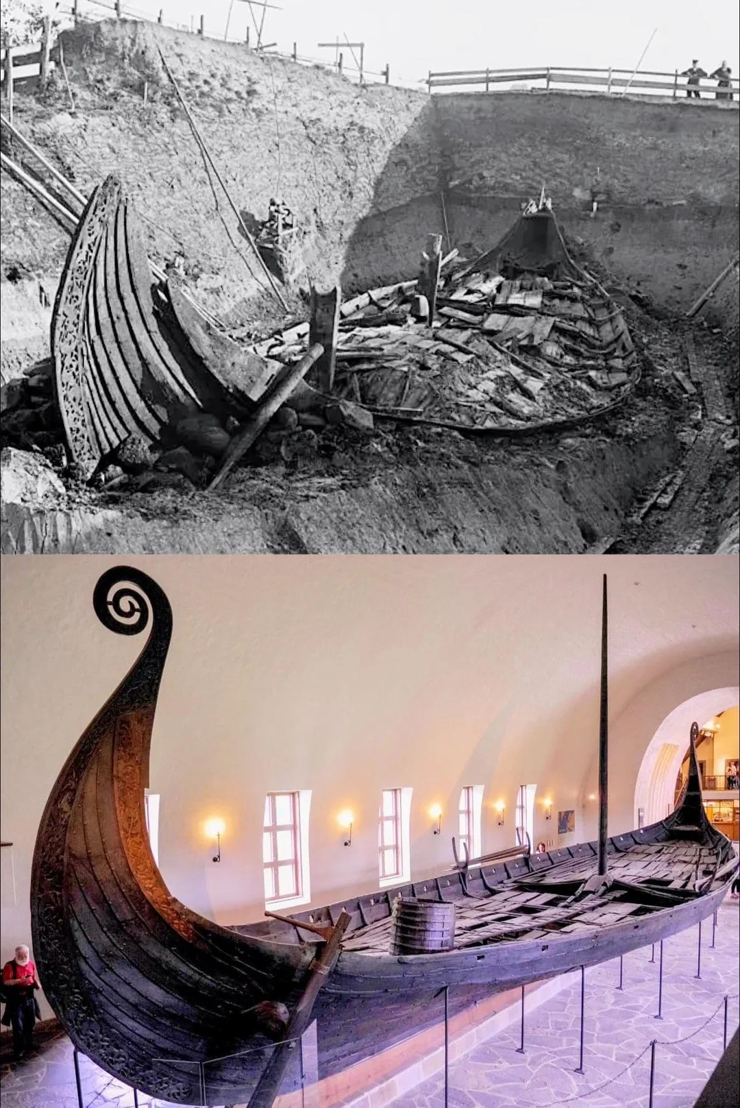 Tre ynka centimeter i fel skrovlängd kan betyda mycket, om så bara det är en tusendel av ett helt skepps längd. Det visade sig att Original-Oseberg, utgrävt 1903, hade torkat ihop, både innan gravhögen skottades igen på 900-talet, och under hela det 1900-tal – då det restaurerade skeppet stått uppställt på Bygdöy utanför Oslo. Som ni kanske vet, bygger Norrmännen – som inte föraktar sitt kulturarv likt den nuvarande svenska regering vi tyvärr får dras med – just nu ett helt nytt Bygdöy-museum för turister, som ska stå färdigt först om några år – och om det nu också blir ett falskt, AI-styrt Multimedia-spektakel för besökande amerikanska idioter och drägglande, omkringspringande barnrumpor och ”bykkjuhvelpir” utan respekt för utställningsföremålen återstår verkligen att se. Vi vil inte ta ut något i förskott, men de gamla ”skeppshallarna” med tycke av ”Feskekörka” i Göteborg från 1920-talet är nu ett dåligt minne blott..