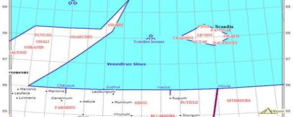 ”Norra delen” bebos av (4) Finni ”Södra delen” bebos av (5) Gutae och (6) Dauciones ”Mellersta delen” bebos av (7) Levoni(Jämför också med Jordanes, och de stammar han nämnde i ”Getica” – från 500-talet – Hedniska Tankars anmärkning)