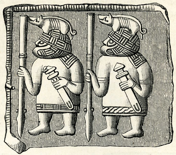 Dauciones och gutae som enligt Ptolemaios bodde i södra Skandinavien: Dauciones (daner) har tolkats som de som har haft skräckinjagande krigshundar (”grand danois ” ??)