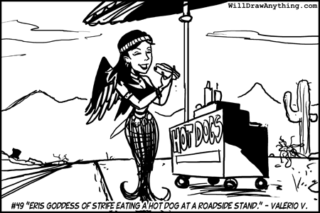 När Eris åt en varm korv utan bröd, framför korvkiosken en fredag, begick hon en fruktansvärd och hädisk handling, ty: