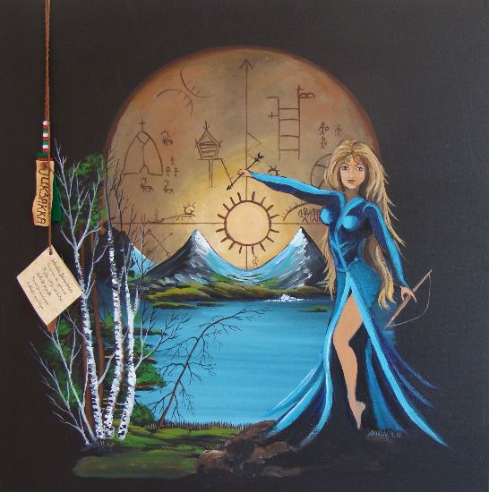 Biejjenniejte, Soldottern är Freja eller Idun i en annan form, och solen, Päive – är Siv – också en solgudinna. Jukksakka – Pil-Akkan, en bågskjutande vintergudinna, motsvarar mycket väl Skade – från vilken hela Skandinavien fått sitt namn.. Såhär skildras hon av en modern samisk konstnärinna – likheten emot Asatro är slående…