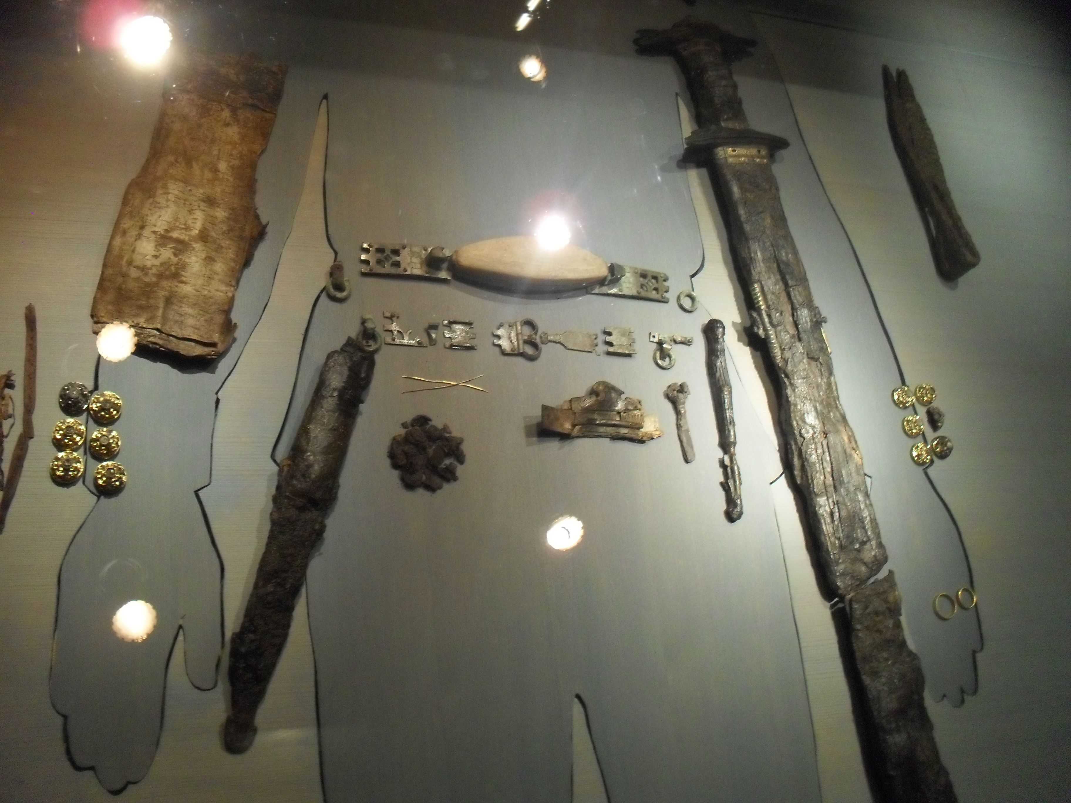 Högom-Kungen var rikt utrustad, också i döden. Han hade gott om guld, och goda vapen. Han låg på en björnfäll, med en mössa av mårdskinn – sannolikt dog han väl under midvintern, mycket nära år 500 – med glas från Svarta havsområdet, och ett bronsfat från de Merovingiska Frankernas rike (inte Belgien, för det fanns inte då!) samt sköld, svärd och spjut, två fina ridhästar med alla seldon, och tre tolfter pilar, precis som det står i de landskapslagar, som upptecknades först på medeltiden, men som berättar om organiserade krigshärar med fastställd och reglementerad utrustning – sk ”fulla folkvapen” (som det står i Upplandslagen) också långt ner i Järnålderns början. Ja, han var förvisso en storman av rang, som inte stod någon Europeisk furste efter ! Han var också klädd i flammande rött – Julens och de hedniska Godarnas eller blotprästernas färg – men ännu intressantare är vad som berättas om gravhög nummer 3, strax brevid den döde hövdingen. Där finns ett gravklot på toppen, som alltid när det rör sig om kvinnogravar från Svealand och Götaland, något som visar att folket i Högom måste haft samma religion som Svearna. Mycket riktigt fann man också två döda kvinnor i högen – men de låg i en husgrund – och det var grunden till en järnldersgård som bränts ned – i en Mordbrand, av allt att döma. Bevis för vem, vad eller vilka som utfört det grymma dådet fanns också alldeles i närheten. Man hittade nämligen pilspetsar av ben inkilade i resterna efter en vägg. Sådana pilar användes inte av svenskar – men däremot av samer. Stenpilar var också kända, och i de isländska sagorna – som den om Orvar Odd – är stenpilar eller benpilar alltid ”finnarnas” eller rättare sagt samernas främsta kännetecken.