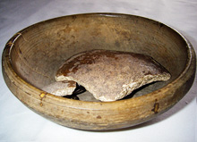 ”På stenens flata översida finns ett sjuttiotal älvkvarnar, små skålformade urgröpningar. I dem offrade forntidens jordbrukare för att få en god skörd. I kultens centrum stod frukbarhetsgudinnan, modergudinnan. Älvkvarnarnas var hennes tecken”