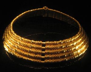 Nu är guldhalskragarna från Folkvandringstid, och långt yngre än bronsåldern, men man har diskuterat om den 700 gram tunga halskragen från Torslunda på Öland, liksom Ållebergs- och Möne-kragarna (som hittades redan på 1800-talet) egentligen var avsedda för gudabilder och inte för levande människor. Mycket tyder på det – enbart Torslunda-kragen har över 270 små, knappt milimeterstora figurer. och än idag har ingen guldsmed lyckats göra en exakt kopia – inte ens med dagens bästa teknik har det lyckats.. Hypotesen är fortfarande att alla detaljerna på Ållebergskragen tillverkades med linser i genomskinlig kvarts, använda som förstoringsglas – inuti ett vanligt järnåldershus eller en dåtida smedja skulle det annars knappt ha varit möjligt att framställa så fina detaljer, på bråkdelar av millimetern när – men nu gjorde smederna ändå allt detta – bara för att visa att de verkligen kunde göra ett verkligt mästerstycke.