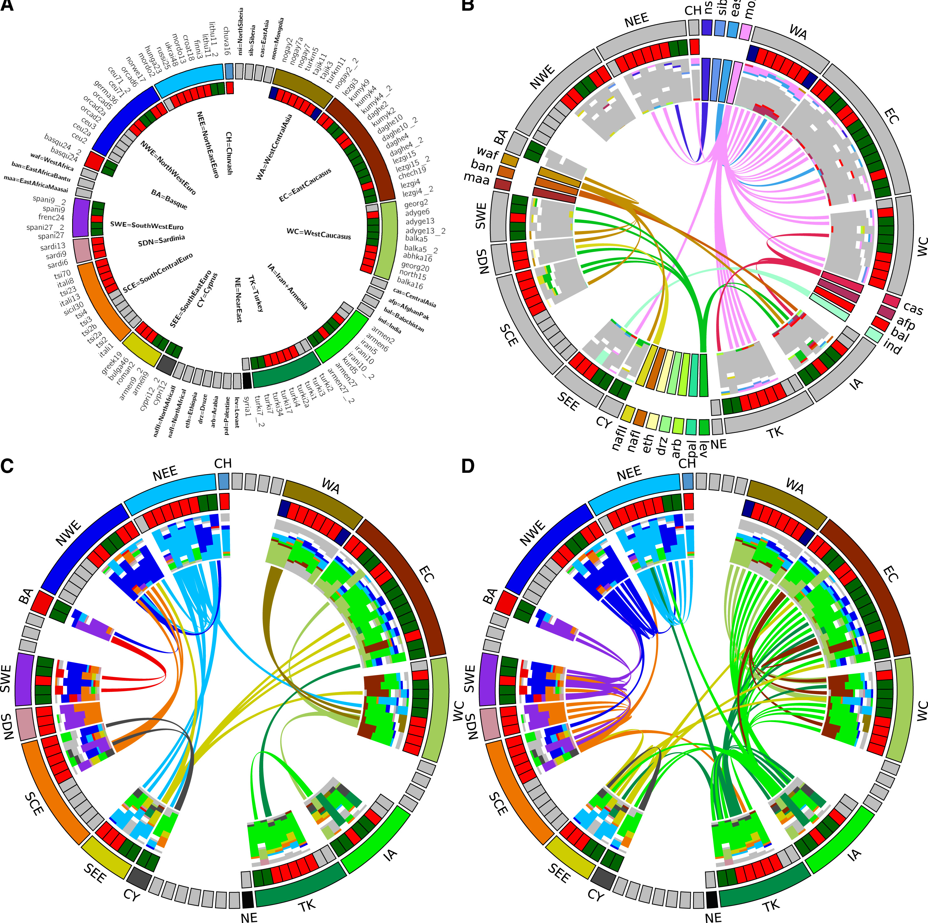 The barplots in Figure 2B show that almost all of West Eurasia has some ancestry from the World Regions. Such World Region ancestry can be seen in the composition of sources involved in events in northern European groups (NWE and NEE), yet only three of the clusters containing individuals from this region derive ancestry from a source best matched by a World Region donor. Deconstruction of the admixture events in these northern European clusters shows that most mixing involves groups already present within West Eurasia (Figures 2C and S3). Assuming a generation time of 29 years [24], dates for these events center around the late first millennium CE, a time known to have involved significant upheaval in Europe (Figure 2B) [25].