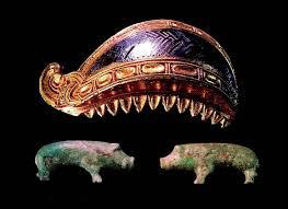 ”Concentration on the question of the trade routes blazed by the ancient peoples of the Medetarrenean and Atlantic areas during the New Stone Age and Bronze Age has indeed revolutionized our comprehension” slutar Spenze, och han berättar om hur man redan på 1920-talet visste att bärnsten från Danmark och Östersjön hittats i Sydspanska gravar, vilket bevisade, att handelsrutterna gick åt båda hållen – och Cheddar-mannen, död av en smäll på käften och ett illa läkt kross-så, sådär 7100 fk – var alltså ingen BOFAST britt, men kanske deltagare i en handels-expedition. Hursomhelst är han ett enstaka fynd, och inget att fästa sig vid – man kan inte dra några som helst slutsatser om RESTEN av befolkningen på ön av just honom – ”en svala gör ingen sommar” som det heter… I Keltisk och Irländsk mytologi räknar man också med flera invandringsvågor, som Spence mycket riktigt uppmärksammar. Där talade man om en forntida ras av svarthåriga (men inte svarta) jättar, ”The Fomorians” som skulle ha kommit över havet eller från underjorden, och som skulle ha byggt inte bara den berömda anläggningen vid New Grange, utan alla stendösar på Irland. Dessa skulle också ha besegrat de allra äldsta invånarna, ”Partholons folk” – likheterna med Megalitkulturens köpmän (som aldrig behöver ha varit särskilt många – man får skilja på folkgrupper och överförd materiell kultur ) men förlorat Conan, sin förste kung. Därefter skulle Irland ha befolkats av ett annat släkte av onda väsen, ”Fir Bolg” som liknar den Nordiska Myologins ”etanz” eller ätarna, alltså vad som senare blev till jotnar, men senare kom deras svurna fiender Tuatha Dé Danann, ett ljushyat, blont och blåögt folk med nordiska drag, som representerar den iriska mytologins svunna ”hjälteålder”.