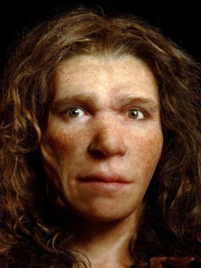 Kvinnlig Neanderthalare från Saint Cesaire, Frankrike (36 000 år före vår tid), enligt Elisabeth Daynes, världsledande expert på ansikts-rekonstruktion Vissa Neanderthal-fynd är förstås mer intressanta än andra. Kvinnan från Saint Cesaire i Massif central, Frankrike, har till exempel begravts med extremt välgjorda pilspetsar och spjut – annars manliga attribut – av Levallois typ, ett slags stenredskap så komplexa, att man innan 1979 trodde att bara vår egen ras kunde tillverka dem. Kanhända ett bevis för byteshandel ? Saint caesaire-kvinnan har dessutom ett centimeterdjupt och decimeterlångt jack i bakhuvudet, mitt på hjässan, som hon inte kan ha fått vid ett fall framåt eller bakåt, och heller inte ha tillfogat sig själv. Dessutom – ifall hon trillat rakt på huvudet, från hög höjd, skulle nacken, bäckenet och andra kroppsdelar ha uppvisat brytskador, som de inte har… så förklaringen är enkel – någon slog ned henne med en klubba, försedd med en spetsig och välgjord flintegg – och av de skadorna dog hon, före 35 års ålder. Förutom det har hon ett brutet överarmsben – mer än 3 cm tjockt – som läkts aningen fel – brottytan sticker ut 1-2 mm, vilket innebär att den brutna armen inte spjälades helt korrekt – den har visserligen läkts utan besvär, men eftersom hennes underarmar tålde 20 gånger mer våld än våra undrar man vad slags liv hon levde, och vad hon kan ha varit med om – men hon har uppenbarligen fått sjukvård och kärleksfull omvårdnad, liksom en bra och ordnad begravning – ifall hon nu inte lyckdes ”bota” benbrottet själv. Människor kan bara få ”spiralfrakturer” på ben och armar om de fastnar med armen i kläm, exempelvis i en dörr, som någon smäller igen, eller åker skidor med en bindning som inte löser ut i tid, snubblar med foten fast i en trädrot, eller liknande. Om Saint Cesaire kvinnan bröt armen, minst 4-5 år innan hon dog, måste hon haft den inkörd i ett ihåligt träd, kanske (vid klättring ?) eller i en klippskreva – eller också har någon hoppat och stampat på den, med all kraft – och personen som tillfogat henne detta, liksom slaget i huvudet – måste ha varit – en annan Neanderthalare – har forskningen räknat ut. Ingen Homo Sapiens, man eller kvinna, skulle kunna tillfoga någon den sortens kranieskador – vår egen ras är helt enkelt inte starka nog att spräcka Neanderthal-skallar… Men kanske var hon en satkärring, helt enkelt. Ovanligt gnatig, svår att ha och göra med – eller helt omöjlig, en hel istid igenom – den sorts person man inte alls skulel vilja ha till granne – eller också var förövaren – eller föröverskan – helt enkelt en Skitstövel, rätt och slätt – eller från en uppenbart fientlig klan eller familjegrupp – kanske i konkurrens om föda, eller ägodelar… ”spjutspets-teknologi” har alltid haft sina fördelar…