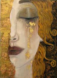 ”Frejas tårar av guld, över människornas missbruk och oerhörda dårskap” (Tavla av Gustav Klimt)