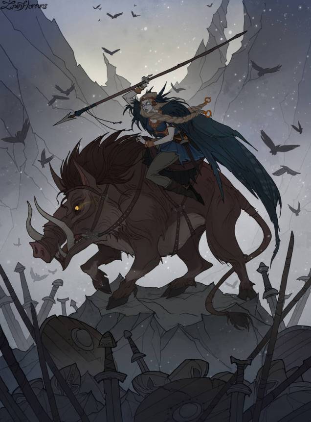 Liksom Hildisvin, Strids-Svinet, hennes enorma galt som nämns i ”Hyndluljöd”