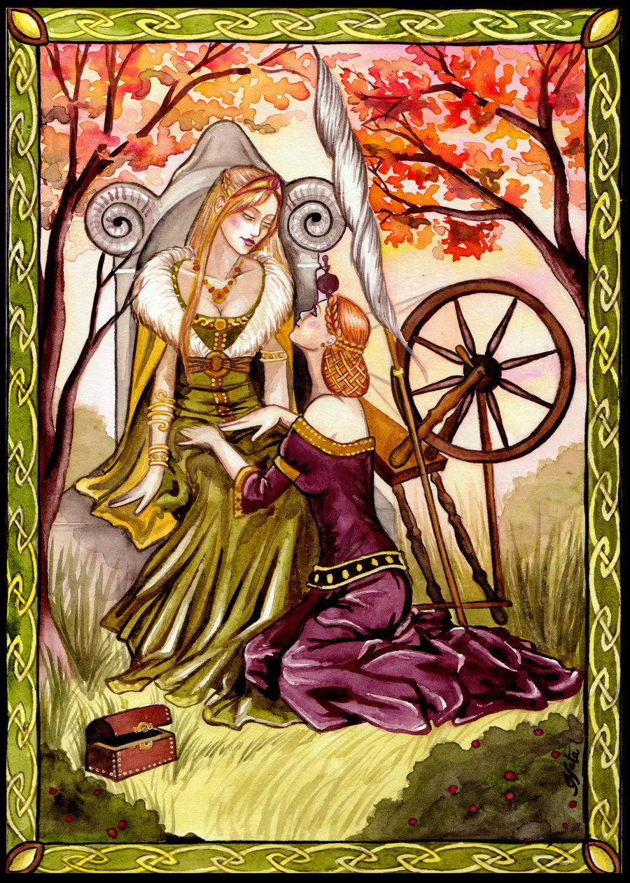 Determined, now that the Aesir and Vanir were at peace and the Aesir held sway over the worlds, Frigg set to earn from every creature that lived, every thing that crawled, flew, swam, grew, or rooted in the earth; indeed from every rock and metal, every gem and stone, a promise to do no harm to her son. She succeeded almost beyond belief in securing the oath of every thing that existed in the nine worlds, except for one. Mistletoe. It was only Mistletoe that refused to swear, and with an arrow of Mistletoe was Baldur slain, and winter came into our world. The goddess blessed with the ability to see wyrd, the weavings of fate more deeply and truly than any other, a goddess with power and knowledge almost beyond all definable limits set out to protect her son, and she failed.