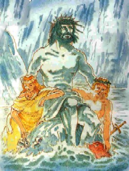 Njord (här illustrerad av Giovanni Casselli på 1990-talet) är gud även över skeppsbyggnad, och havets alla djur