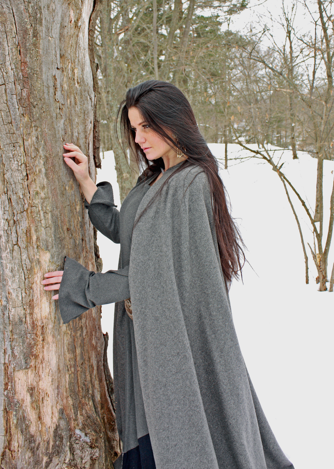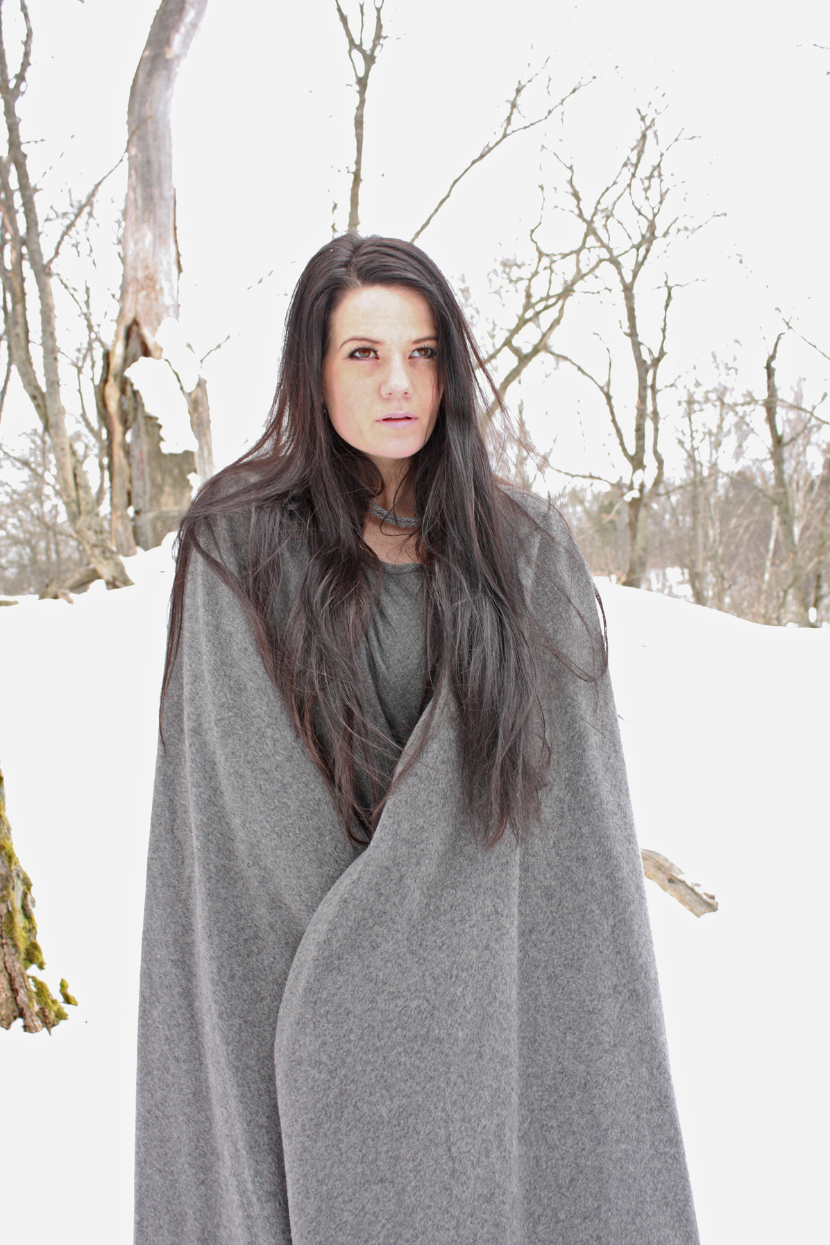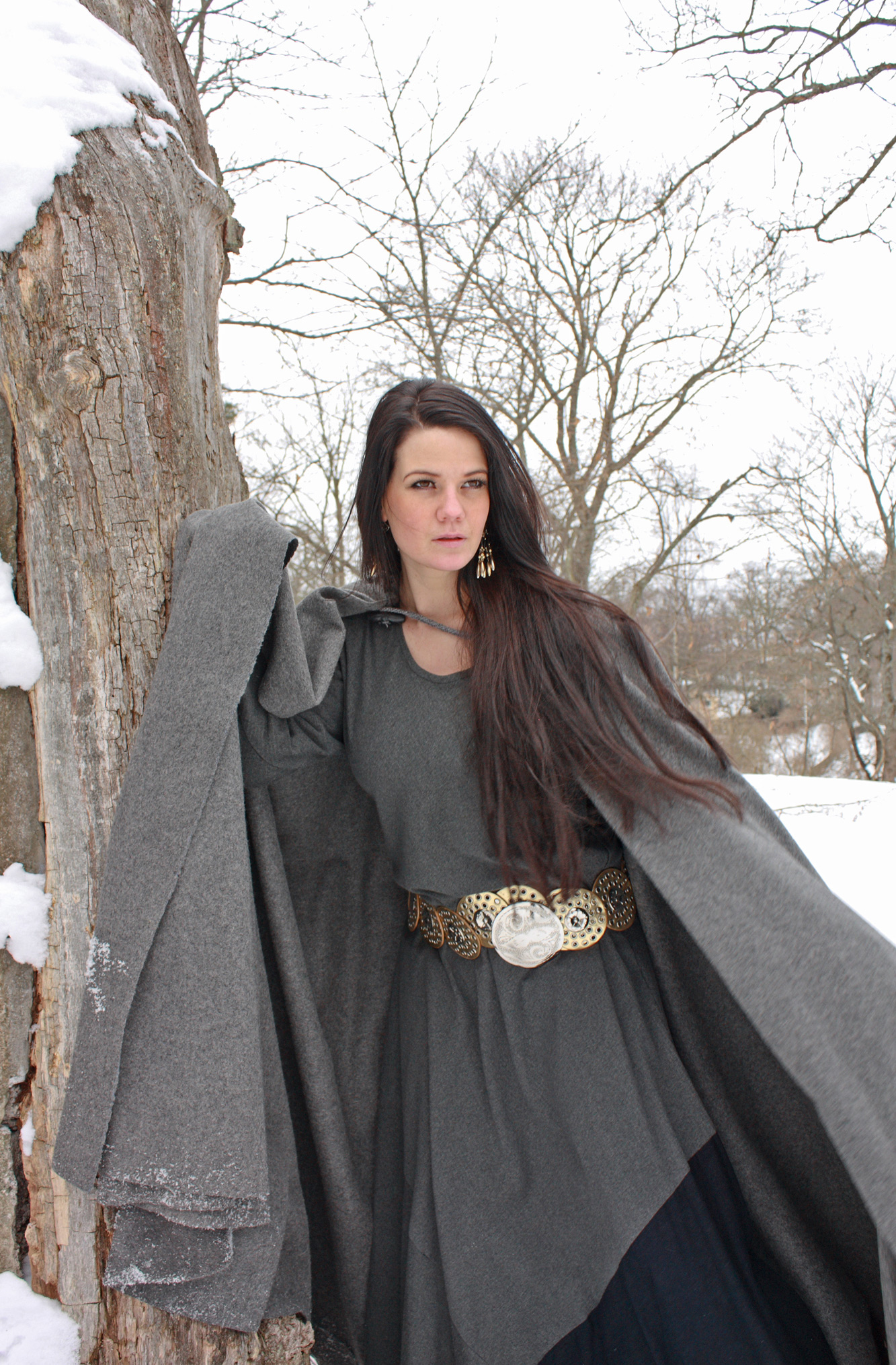 Skade som jag själv skildrade henne, vintern 2012 – på ett gammalt gravfält nära Stockholm (svarthårig och med grekiska smycken)