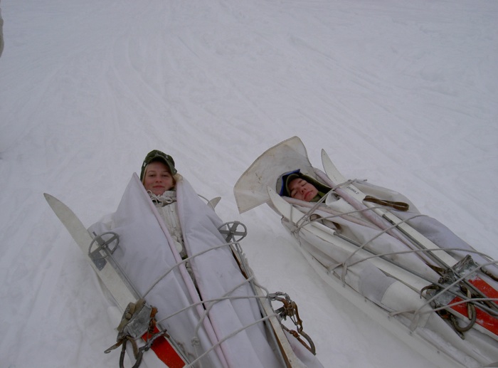 Dry cold and 5-15 degrees minus Centigrade is ideal – you can even walk barefoot through dry snow – but when you have wet snow and damp conditions – watch out !