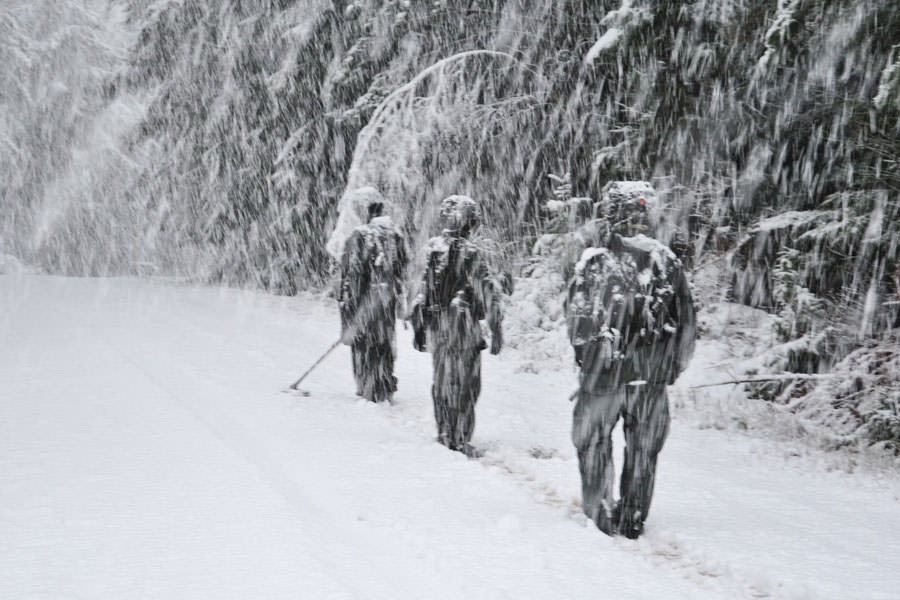In heavy snow, and normal daylight around the end of December on our latitudes, it looks like this: