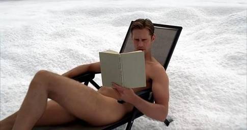 In Norway, they say that if you encounter a house or garth with wood stacked like this – that is to say – a neat and orderly fashion – you can be sure that there are good and hospitable people inside. Having lots of firewood is like a standing invitation to friends or strangers, and in batchelors, it might even indicate some guy ”on the make” like Stellan Skarsgård here below, so be warned and ”go home, afore ye lie down” all you ladies…