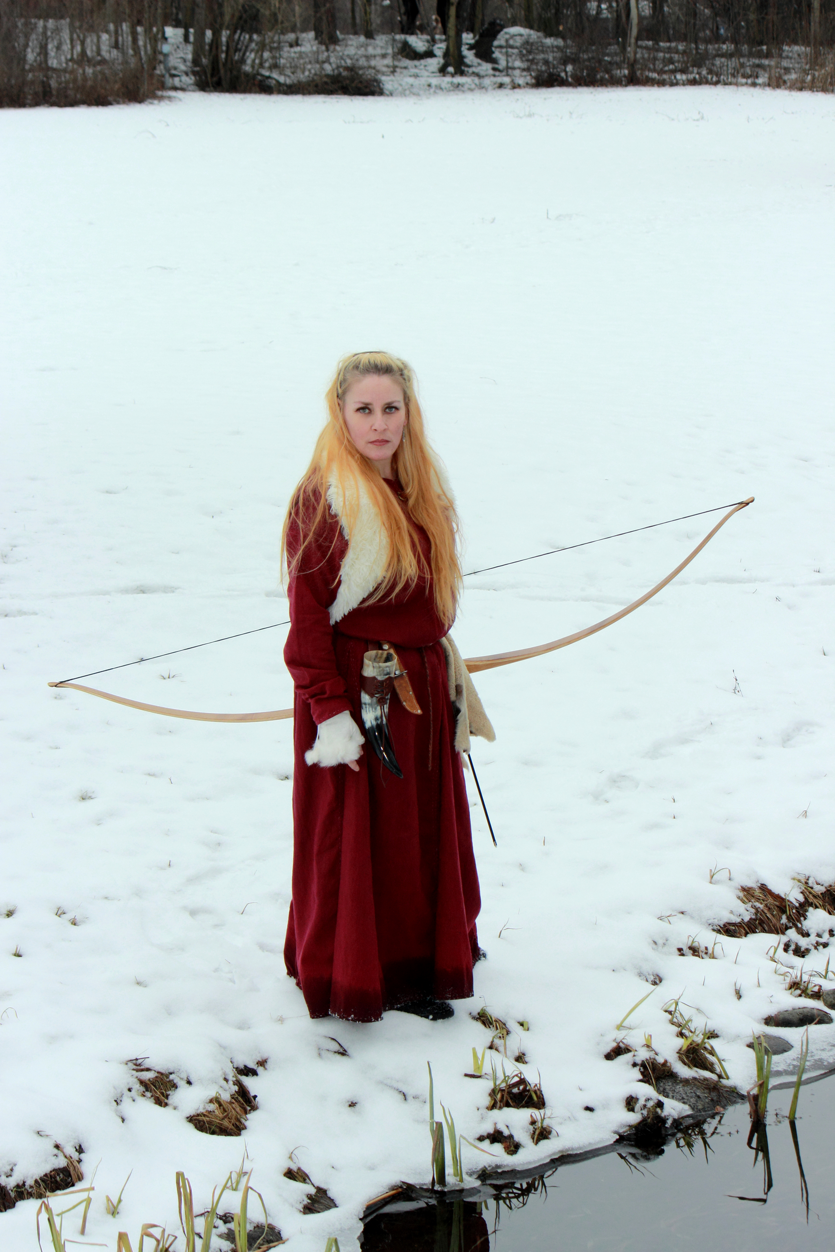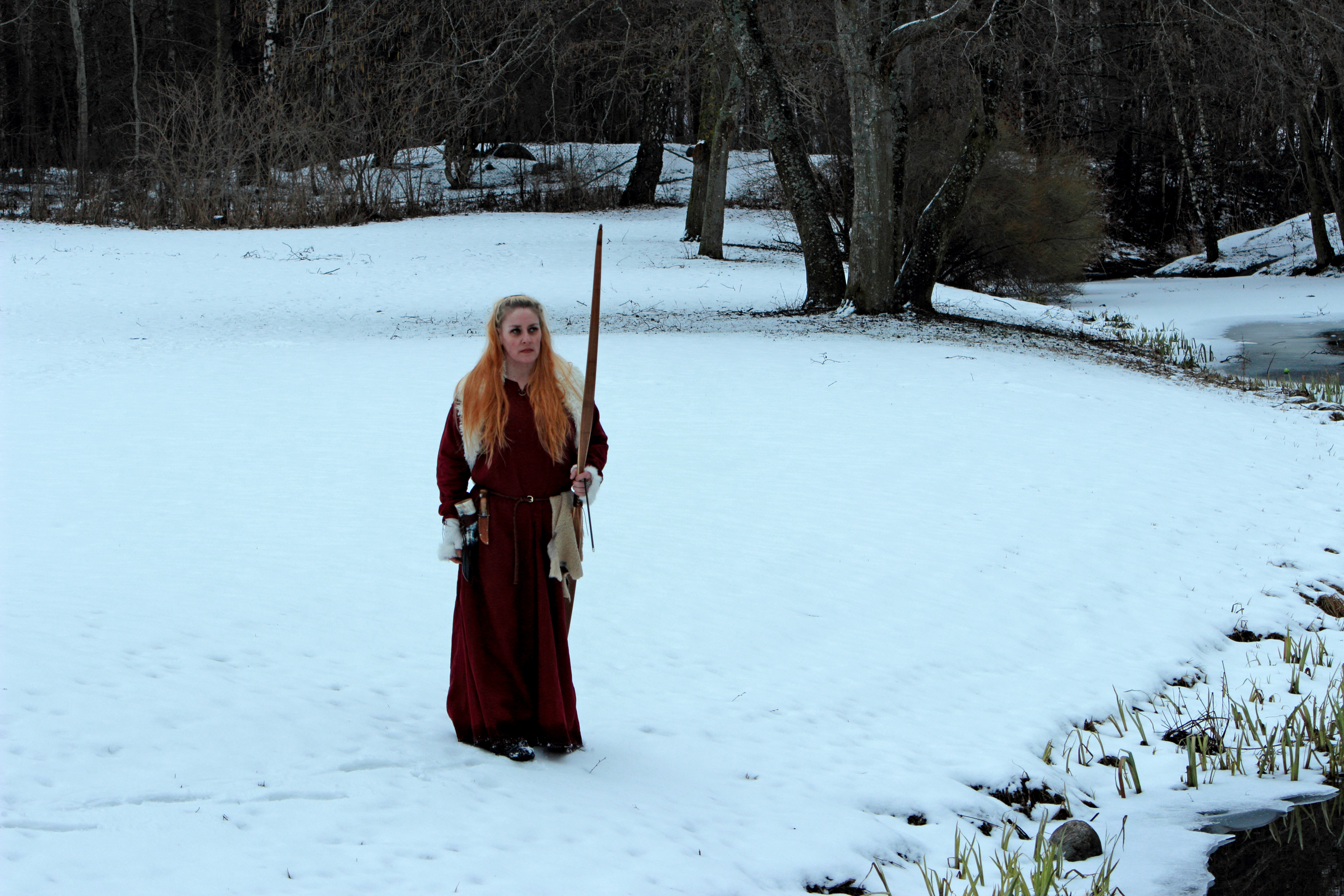 De här bilderna togs ute på Djurgården, som också innehåller lämningar efter ett gammalt gårdsgravfält, samt en järnåldersby – och därmed ett gudahov. Det var rejält kallt dagen de togs, och vi måste först av allt gå en omväg vidpass tre kilometer, eftersom den bro över Djurgårdskanalen jag rekat via kartrek, reparerades för tillfället och därför var ur funktion. Hon å sin sida insisterade på enbart järnåldersaktiga kläder, samt även medeltida skinnskor – så smala att det inte fanns plats för skohö, eller ens strumpor. Jag frågade henne om hon frös, för hon skakade hela tiden som en fågelunge, men fick svaret att om man vill göra bra konst, måste man lära sig att lida för den – och stå ut inte bara med den svåraste köld, utan även med smärta och den tyngsta sorg. Ett svar, värdigt verklighetens Skade. Och jag tänkte på den ryska sagan om styvdottern och Ded Moroz.