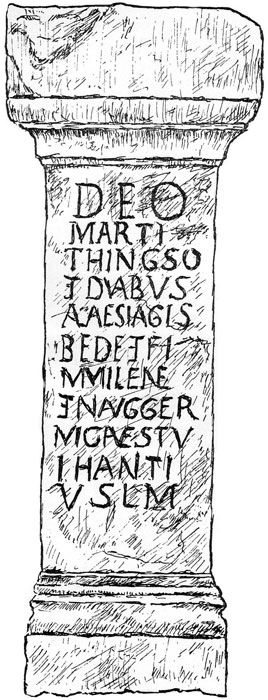 Han redogör för hur Tiw, Tiwas, den gamle Indoeuropeiske himmelsgud från bronsåldern som senare blev Tyr, också finns omnämnd på en inskrift från Hadrianus Mur uppe i Skottland på 300-talet enligt vår tideräkning (hela Frisiska kohorter dyrkade Tyr bataljonvis – och det är som vi ska se en mycket betydelsefull detalj), och hur friserna tillbad honom som ”Mars Thingsus” eller Tingets, folkförsamlingens gudom – samma ord Ting syns ju för övrigt i våra svenska Tingshus – och hur Tyrs offer av sin högra hand för rättvisans sak sågs som en sinnebild för den självuppoffrande, samhällsupprätthållande krigaren.