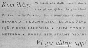 Kanhända kommer ännu ett ögonblick, då allt förändras. Kanske ser vi ett nytt och bättre samhälle växa fram, ett nytt Sverige istället för den eländiga kloak vårt eget Folkhem tyvärr har blivit – men till den dagen – ni hedningar må – måste vi vara Sega som Malungs Läder, Raka i Ryggen som Norrlands Furor och Hårda som Volvos Stål – om jag får komma med en sliten klyscha.