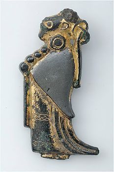 sk ”Guldgubbar” från 500-talets Vång, Blekinge. Valkyriefigur till höger