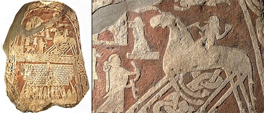 Valkyria (i mitten på bilden) på bildsten från Tjängvide, 700-talets Gotland