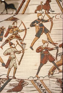Jag har själv aldrig sett en avbildning av en bågskytt från dessa tidsperioder, som varit något annat än en ren infanterist, och alltså gått till fots. Bayeux-tapeten ger syn för sägen. Jag har redan förklarat, att de enstaka sagor och legender (som den om Bråvalla slag, eller Hervara-sagan) som alls nämner ”Sköldmör” pekar ut dem som ytterst sällsynta, och alltid kämpande till fots, även om de kan ha haft pilbågar. Vesna i Bråvalla-slaget håller ett kungligt sköldemärke, och har en befälsroll, men blir nedhuggen och förlorar ena armen. Hervor i Hervara-sagan tar tillbaka ett fäderne-ärvt svärd ur en gravhög, men får en förbannelse på sig av faderns vålnad, och båda dessa kvinnliga krigare är alltså föga lyckosamma.