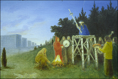 Modern sejd och Sejdhjälle i höghusens skugga..