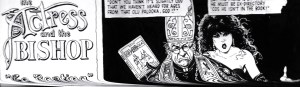 DETTA – mina Damer och Herrar – för det är ni väl ? – är ett utdrag ur den brittiska tecknade serien ”The Bishop and the Actress” skapad av den – i brittiska serie-tecknar-kretsar – mycket kände Brian Bolland – som annars mest är känd som ett slags ”ligne claire” tecknare i fransk-belgisk stil kanske vi kunde säga – och en sedan mer än 45 år väl etablerad karriär som serietecknare för bland annat EC Comics borta i USA, producent av andefattiga och ganska meningslösa Superhjälte-serier.