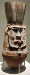 Nephthys var en fornegyptisk gudinna, som omnämns redan i Pyramidtexterna för över 5000 år sedan. Hennes namn betyder ”husets härskarinna” analogt med Freja, som betyder samma sak; och hon var gudinna för hälsan, natten, mörker, gudstjänster i tempel men också över öl, och enorma mängder av drycken ansågs som lämpligt att konsumera vid varenda högtid, som skulle hylla henne. Förutom det var hon syster till Isis, Sets följeslagerska och gemål till Horus, bara så att ni vet.. På sit thuvud bar hon vanligen ett hus i miniatyr, samt en korg – alltsammans kunde möjligen göra tjänst som en ölkruka.