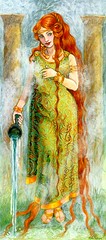 Gunnlöd, Suttungs dotter, var Skaldemjödets väkterska enligt Eddan. I Hnitbergs inre bevakade hon de tre kittlarna Bodn, Sodn och Odröder, alltså Mältpannan, Sjudpannan och Jäskaret. Oden kom till henne förklädd, och tömde de tre kittlarna i tre väldiga drag, innan han flög bort från henne i en örns gestalt. Ett bra exempel på myten om henne, väl återberättad, finner ni här. Gunnlöd firar namnsdag den 1 Juni, och då kan det vara bra att fira henne i mjöd eller veteöl. Mera om henne finner ni på länken här, men underligt nog har inga moderna bryggare döpt någon av sina brygder efter henne.