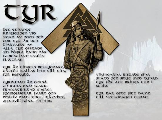Så står det i det gamla norska runpoemet – dvs Tyr är den enhänte Asen, ofta får smeden blåsa... Att Tyrs vänstra hand, månhanden – i motsats till höger hand, som ju stod för Solen – känner nog de flesta till, och det isländska runpoemet säger samma sak: