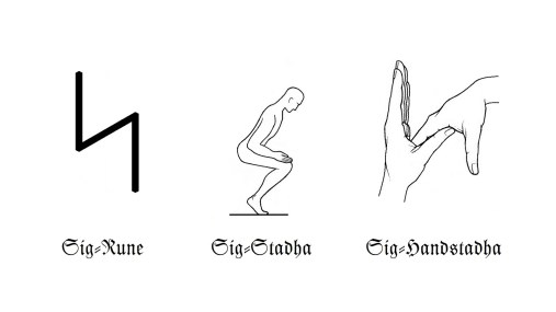 Inom ”Stadhagalder” eller ”stående galder” vilket långt senare kallades ”Run-yoga” kan runan tecknas såhär…