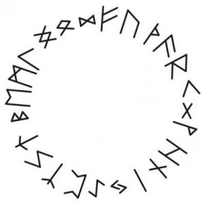 ”Segerrunor skall du kunna, om du seger vill hava, Och rista dem på svärdets hjalt. Somliga på blodrännan, somliga på eggkroppen, och nämna Två gånger Tyr…”