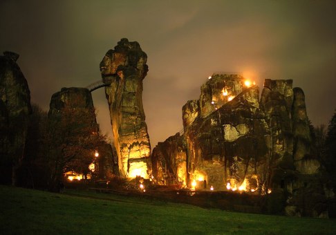 Sagans ”Hindarfjäll” eller soltempel är kanske inte bara en saga. Många vet, att Externsteines klippformationer finns på riktigt och varit använda i förkristen tid…