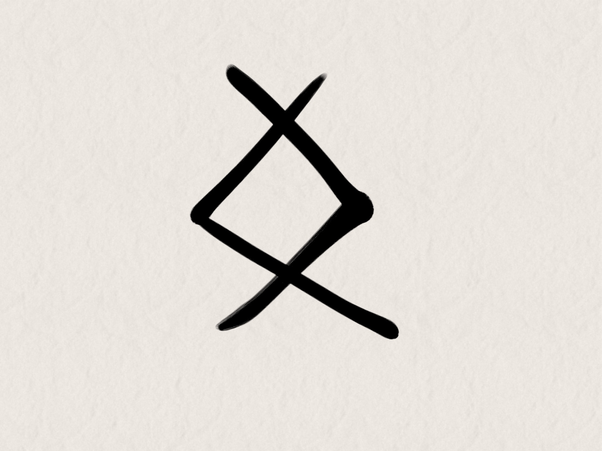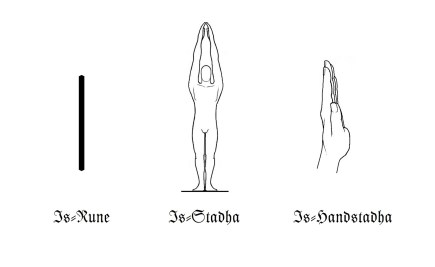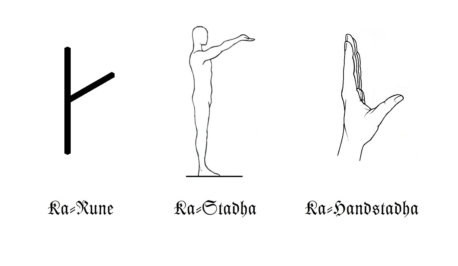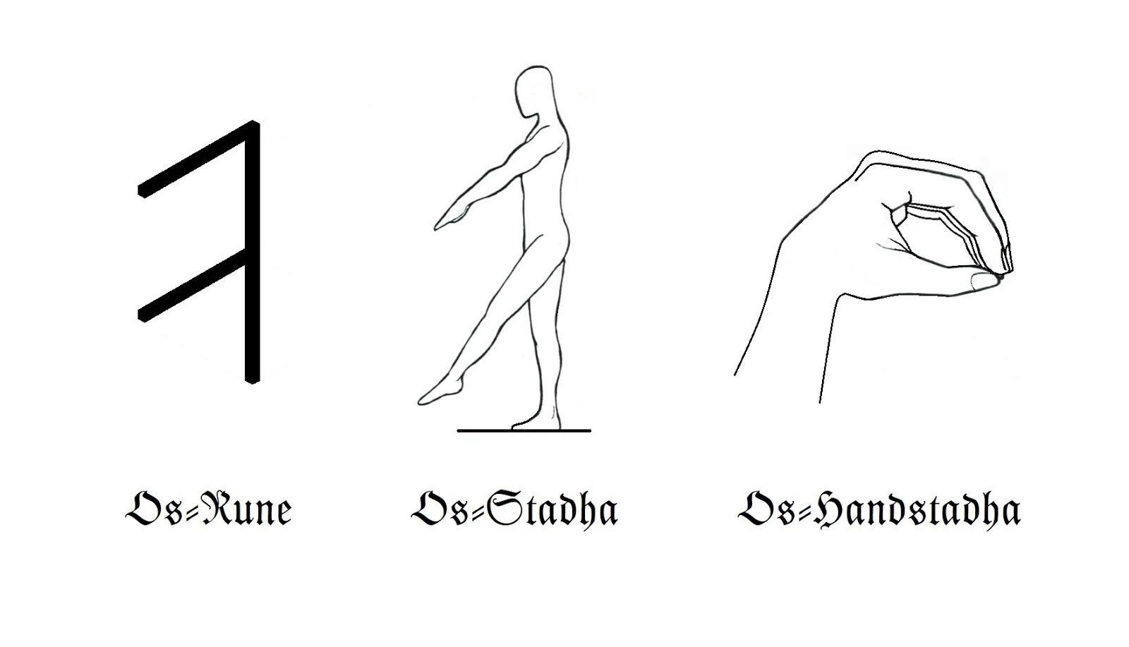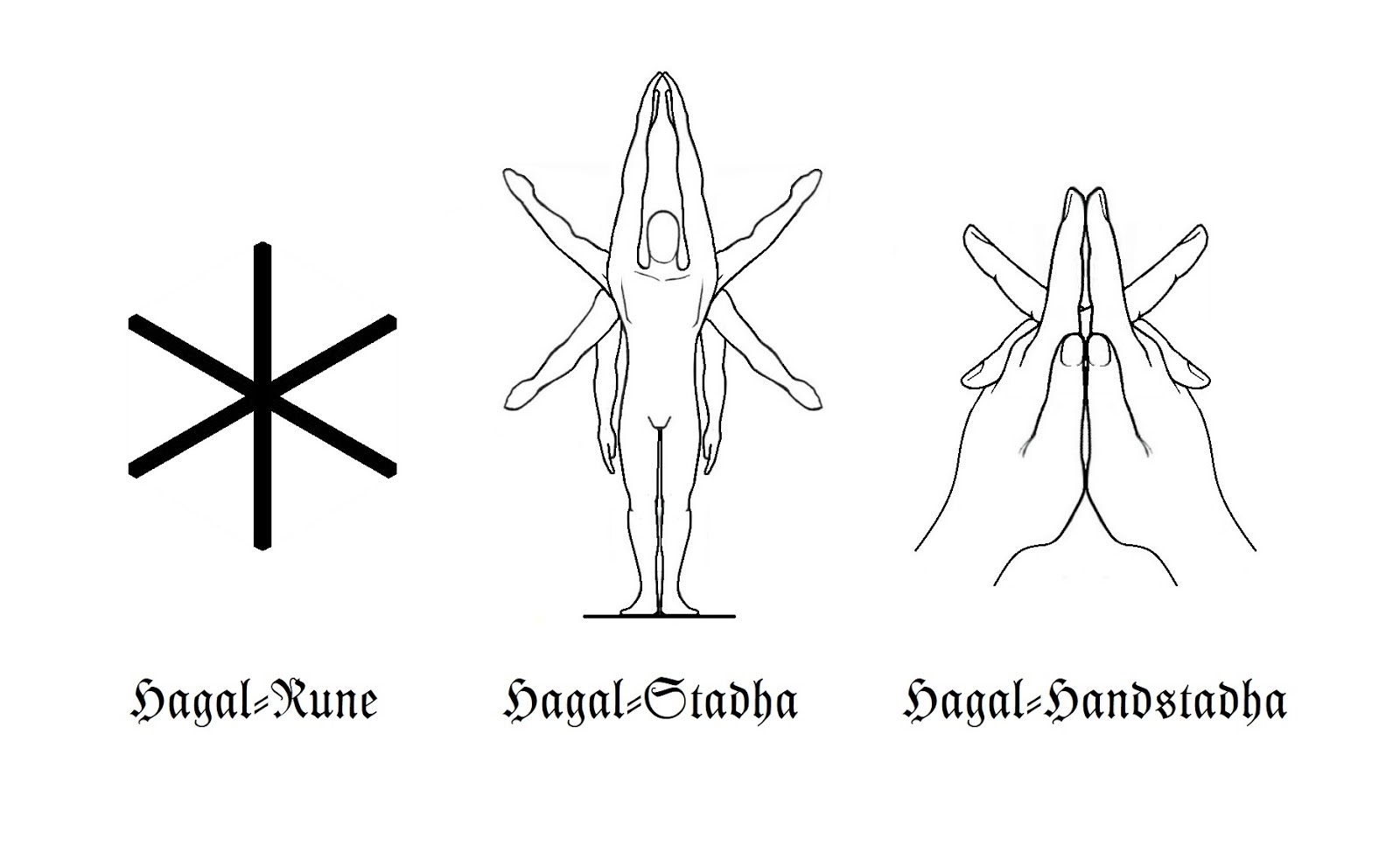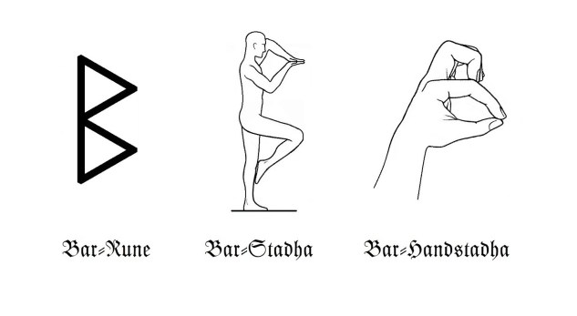 Inom ”Stadhagalder” eller ”stående galder” vilket långt senare kallades ”Run-yoga” kan runan tecknas såhär…
