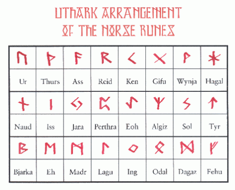 I esoterisk litteratur, både i Sverige och utlandet, brukar man då och då stöta på den Urgermanska, sk ”äldre” runraden med sina 24 tecken. Numera används den ofta till att ”spå” i runor, en ganska tvivelaktig 1900-talsuppfinning, som det finns få eller nästan inga belägg för. Se mina tidigare inlägg i ämnet. Runorna används också som meditations-redskap, i ritualer, för att göra amuletter (företrädesvis i form av sk ”bindrunor”) och mycket annat, som inte alltid motsäger utan snarare kompletterar deras tidigare användning som skrivtecken.
